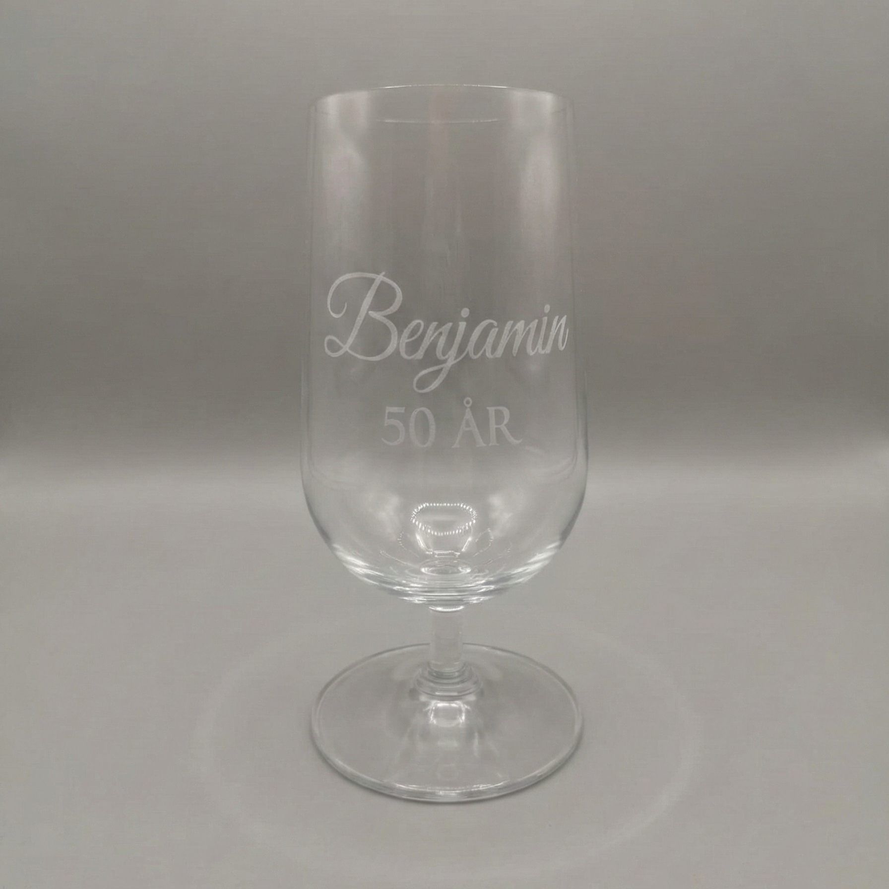 Uanset om det er til den kræsne øl-kender eller som en sjov gave til festen, så rammer du plet med dette glas. Indtast blot det ønskede navn og år herunder, så sørger vi for en flot og holdbar gravering.