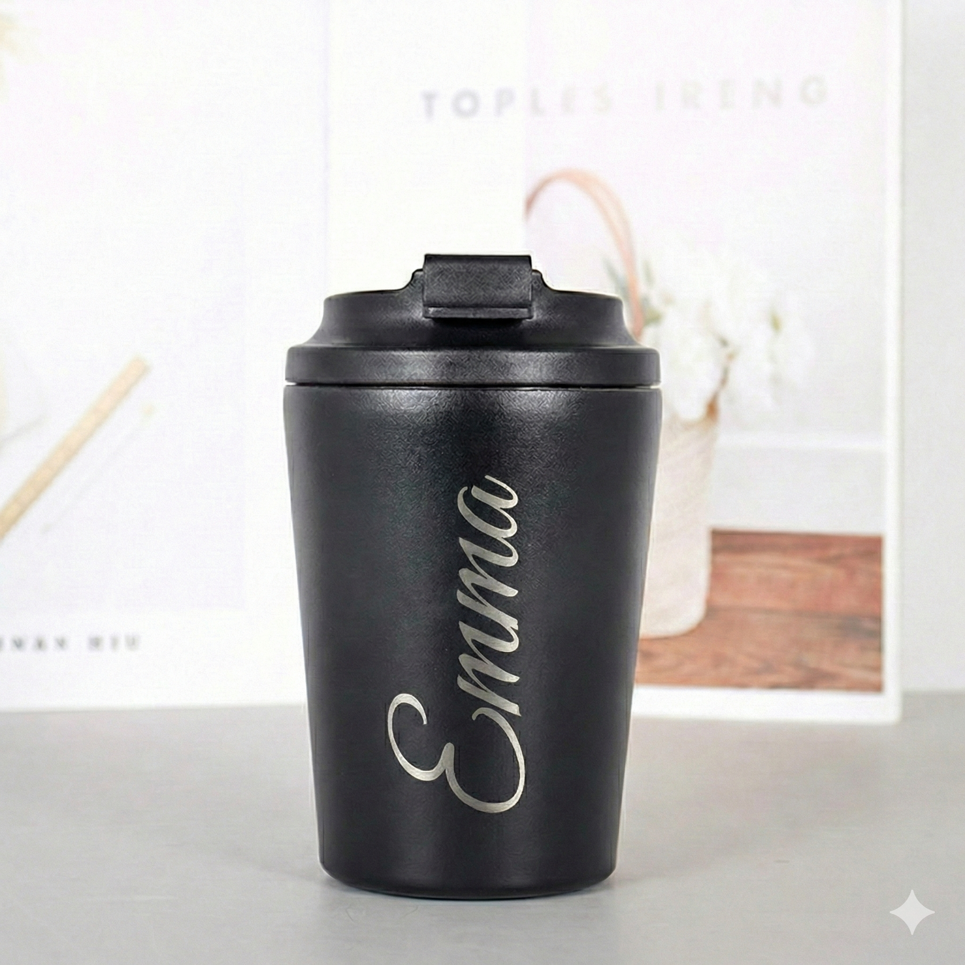 Gør din to-go kop helt din egen med en personlig navnegravering. En termokop med navn er ikke bare stilfuld; den er den ultimative løsning på et klassisk hverdagsproblem: At finde sin egen kop i mængden.